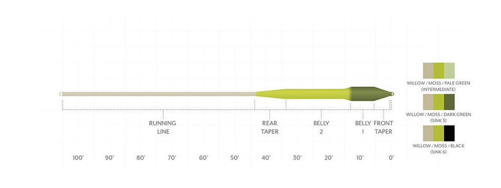 Short, Powerful Head - Every line model in this series features a 33.5' head which is relatively short. A short, powerful head helps anglers turn over large flies even in windy conditions. The WF8S line has a 30' head weight of 280 grains which means it's built heavy. Most shooting-style, sinking streamer lines have a similar design to maximize fly turnover and performance at longer distances.